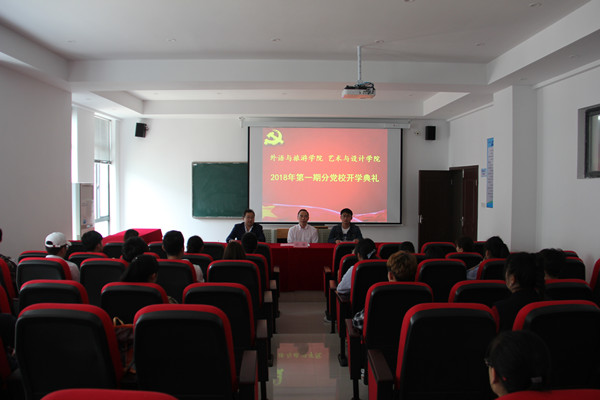 2018年4月3日下午,外语与旅游学院·艺术与设计学院2018年第一期分党校开班典礼在国教406教室举行。外语与旅游学院党总支书记江铭、艺术与设计学院学生党支部书记蒋红中及参加培训学员40余人参加了开班典礼。