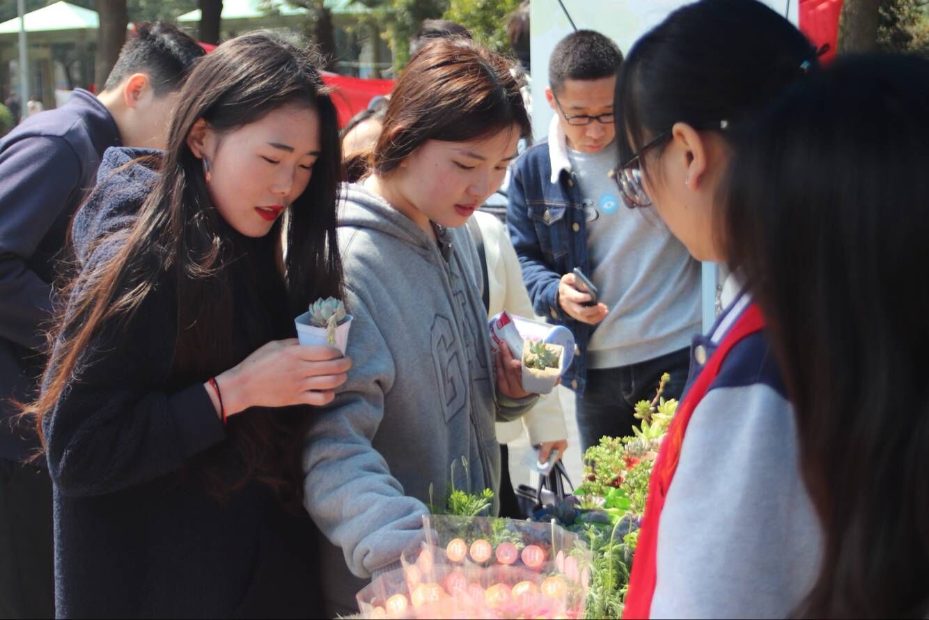 3月23日中午12点,外语与旅游学院红十字会与青年志愿者协会在梅园篮球场举办“绿植义卖,助力公益”活动。此次活动盈利全部用于资助中南社区的贫困家庭。