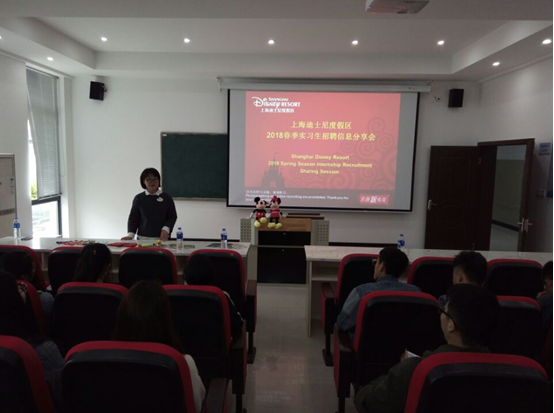 4月12日下午,上海迪士尼度假区校园关系专员张歆逸来我院招聘春季实习生。我院旅游管理专业61631班、61632班学生参加了宣讲会。