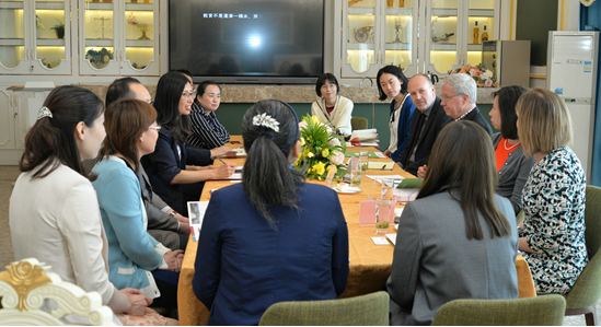 4月18日上午,美国万礼豪程项目总监董佳、首席资深学术顾问圣地亚哥州立大学教授Gene Lamke(杜靖德)、项目传讯总监兼教学顾问Linda Roundtree(袁诗琳)等一行6人来我院交流访问。