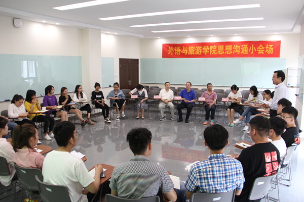 6月5日下午,外语与旅游学院在国教504举行“诚信与大学生成长成才”思想沟通小会场活动。外旅学院党总支书记江铭、校关工委张其南教授、外旅学院关工委曹成志教授、校学工处大学生事务中心主任丁远、外旅学院辅导员林姣姣、学生代表30余人参加了活动。外旅学院辅导员罗启宝主持活动。