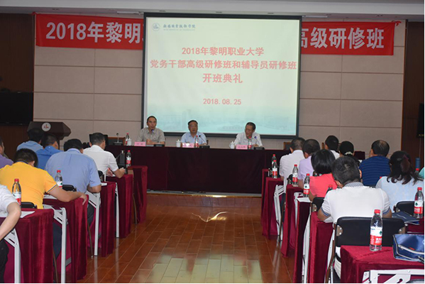 8月25日上午,黎明职业大学党务干部高级研修班和学工干部职业能力提升培训班在我校国际交流中心二楼报告厅开班,来自黎明职业大学的党务和学工干部共71名学员参加了开班典礼。