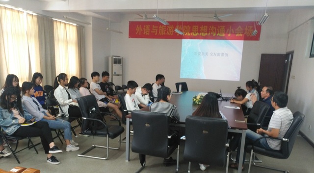 9月25日上午,外语与旅游学院在国教604开展了以“我的青春遇见你”为主题的思想沟通小会场,目的在于引导大家探讨大学生如何处理学习与恋爱的关系,树立正确的恋爱观。此次小会场由商务英语教研室杨双老师主持,外语与旅游学院书记江铭、应用法语专业老师吴晓峰,以及对大学人际关系、恋爱观困惑的同学参与了此次活动。