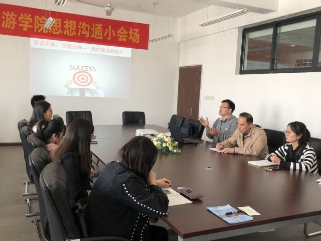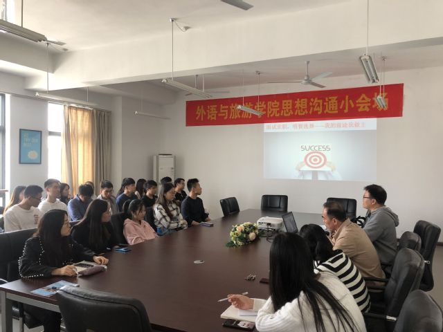 为落实好学生就业求职工作,帮助学生做好职前准备,10月24日下午,外语与旅游学院在国际交流中心604开展了“面试求职,明智选择”面试求职技巧思想沟通小会场。外语与旅游学院党总支书记江铭、学工办辅导员、各班学生代表参加了此次思想沟通活动。
