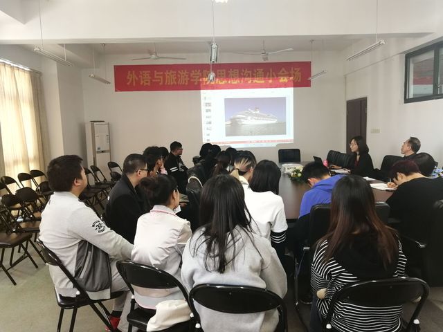 为帮助大学生自清自省,提高大学生素质,10月29日下午,外语与旅游学院在国际交流中心604开展了以“从大型邮轮退出中国市场谈大学生素质”为主题的思想沟通小会场。外语与旅游学院党总支书记江铭、班主任张理夏老师、学工办辅导员,以及商务日语61631班学生参加了此次思想沟通活动。
