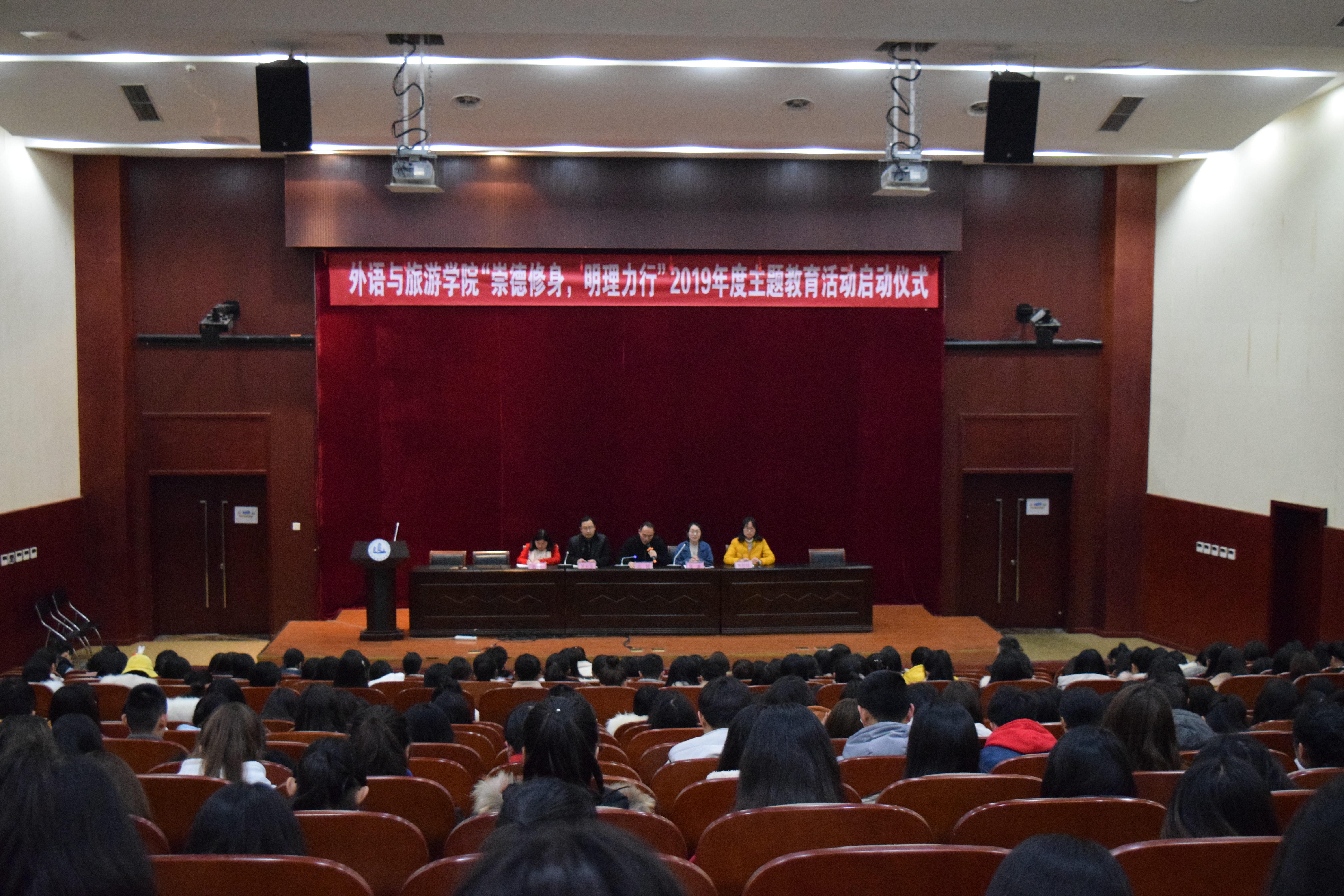 3月5日下午,外语与旅游学院“崇德修身,明理力行”2019年度主题教育活动启动仪式在国教一楼报告厅举行。我院党总支书记江铭、学工办主任周嫄、全体辅导员以及2017、2018级学生代表参加了此次活动。