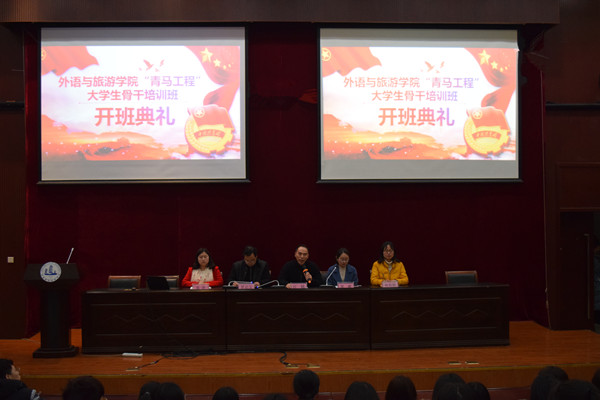 3月5日下午,外语与旅游学院在国教报告厅举行“青年马克思主义者培养工程”大学生骨干培训班开班仪式。学院党总支书记江铭出席仪式并讲话,学工办、分团委全体老师、青马班100名“青马班”学员参加了开班仪式。