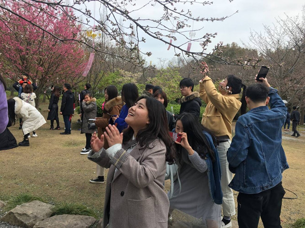 下午13:30,师生们分批次到达鼋头渚,按照规划好的游览路线进行参观学习。沿途小桥流水、花香四溢,师生们结伴而行,沐春光、赏美景中交流学习、生活与对未来的期盼。随后全班在樱花谷中席地而坐,班主任叶设玲老师给学生开了一场特殊的户外班会,同学们围绕“聚力、团结、友谊、爱国”等主题,纷纷发表观点与心得体会,把本次团日活动推向高潮。最后同学们在充山隐秀石刻下合影留念。