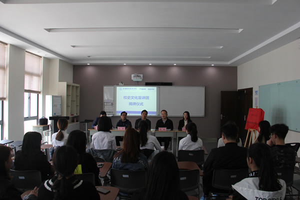 4月16日下午,我校大学生校史文化宣讲团成立大会在国交504会议室举行。校党委宣传部部长刘文平、校团委书记赵健、外语与旅游学院副院长梁峰,外语与旅游学院罗启宝老师、宣讲团指导教师叶设玲以及校史宣讲团全体成员参加成立大会,罗启宝老师主持成立大会。