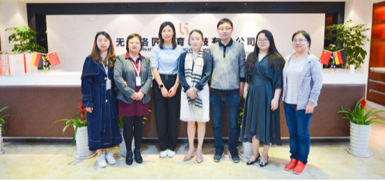 5月9日下午,我院院长杨丽、院长助理徐优明、应用语言系主任黄雪琴、应用德语教研室主任雷蕾等一行4人赴无锡洛匠教育科技有限公司拜访交流,受到总经理唐晓娟等的热情接待。