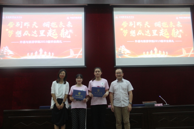 2019年6月21日下午2时,外语与旅游学院2019届毕业证书发放仪式在国际交流中心一楼报告厅隆重举行。外语与旅游学院院长杨丽、副院长梁峰全体辅导员、部分教师代表,以及2019届全体毕业生共同出席了本次仪式,罗启宝担任主持人。
