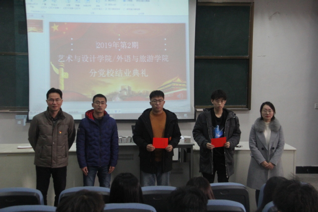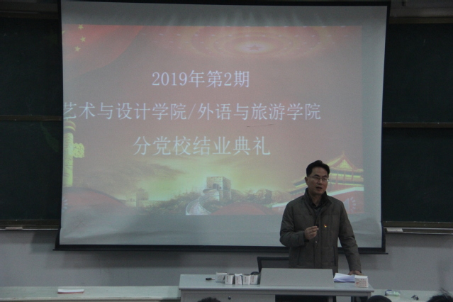 2019年12月3日12:50,外语与旅游学院和艺术与设计学院2019年第2期分党校结业典礼在j4-102举行,艺术与设计学院党总支书记罗嘉军、艺术与设计学院辅导员蒋红中、外语与旅游学院学生党支部书记周嫄以及全体分党校学员参加了此次结业典礼。
