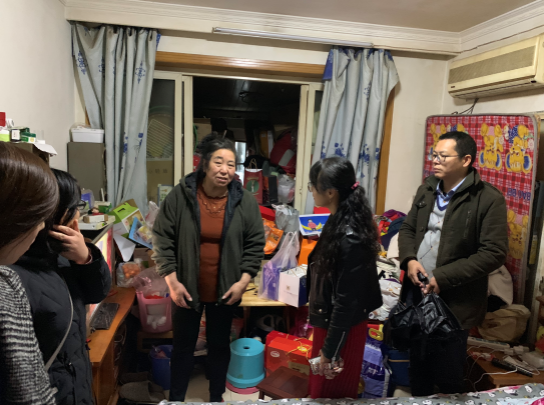 凛冽的寒风阻挡不了送关怀的脚步,严寒的深冬冷却不了送温暖的爱心。2020年1月7日下午,外语与旅游学院教工第二党支部部分党员,在支部书记张健的带领下,来到与金星街道中南社区爱心结对帮扶的许嵘晓家庭看望慰问,提前为他们一家送去节日的祝福和问候,并送上精心准备的米、油、牛奶等生活必需品。党员同志们详细询问了许嵘晓奶奶的身体状况、孩子的学习情况、还需要什么帮助,鼓励他们树立信心、克服困难,在大家的帮助和支持下,生活会好起来。