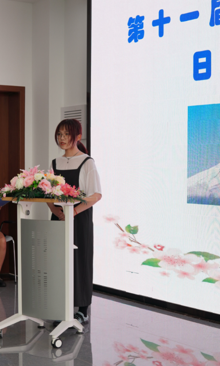 外语与旅游学院杨丽院长到场并致开幕词。经过激烈的角逐,商务英语61932班程曦、商务日语61931班富饶两位同学喜获一等奖。两位同学将被推荐参加10月下旬无锡市举办的“太湖杯”日语演讲比赛。