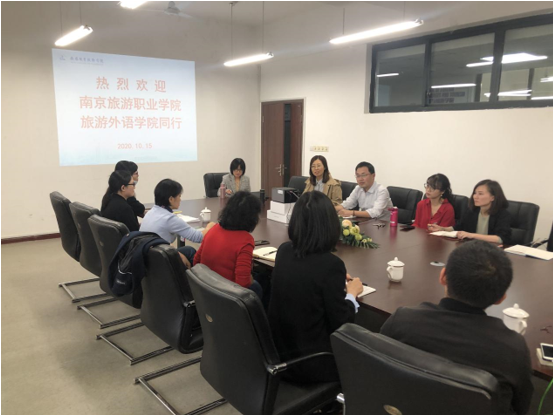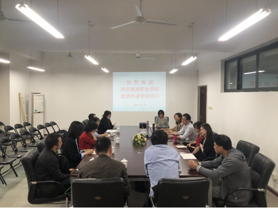 10月15日,南京旅游职业学院旅游外语学院院长邵华教授带领其大学英语、旅游英语及旅游日语骨干教师代表一行8人赴外语与旅游学院交流。学院院长杨丽教授、院长助理徐优明、大学英语教学部副主任张建、商务英语系副主任李骥云、商务英语系教研室负责人任士明及商务英语骨干教师代表参与了本次交流活动。