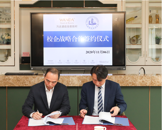 万达酒店及度假村是一家打通酒店开发、建设及管理的全产业链公司,旗下拥有五星、超五星以及顶级酒店品牌,致力于成为国际领先的中国豪华酒店管理集团。我校外语与旅游学院已有30名学生在该公司旗下无锡融创万达文华、万达嘉华酒店实习。此次签约,校企双方将在人才培养培训基地、定向式人才培养和科研开发、技术服务等领域加强合作。(撰稿:许刚;摄影:晨光、叶业;审核:杨丽)