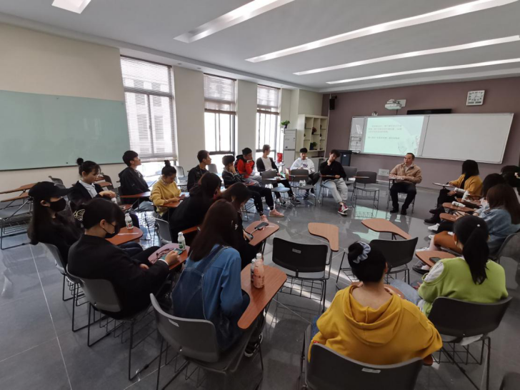 2020年11月3日,外语与旅游学院党总支书记江铭,马克思主义学院邬宗明老师,外语与旅游学院学生工作办公室主任周嫄老师和酒店管理61931班全体同学在国教504开展了一次以“大学生恋爱观”为主题的思想沟通小会场。