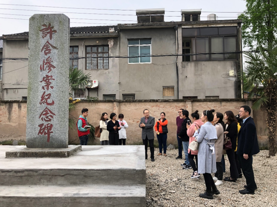 2021年4月13日,外语与旅游学院教工第二党支部全体党员来到滨湖区雪浪街道许舍社区,参观、走访、缅怀先烈,许舍社区党总支副书记何智坚亲自陪同,并进行了讲解。