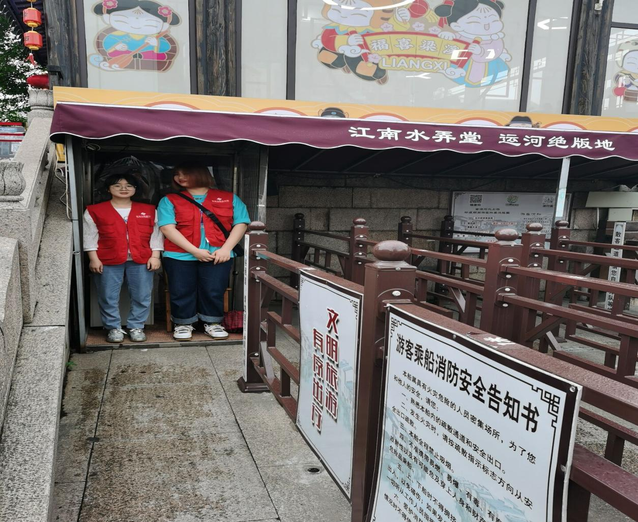 本次活动由学生党支部书记赵艳华老师带队,活动中,外语与旅游学院学生党支部志愿服务队的每个人,分工明确、团结协作、积极实践,分别在游客指引、垃圾清理、扫码检票等方面进行了志愿服务。他们不怕脏、不怕苦、不怕累,从细微处入手、从暖心处做起,为游客们提供整洁的游览环境和周到的贴心服务,获得了游客和古运河公司的一致好评。
