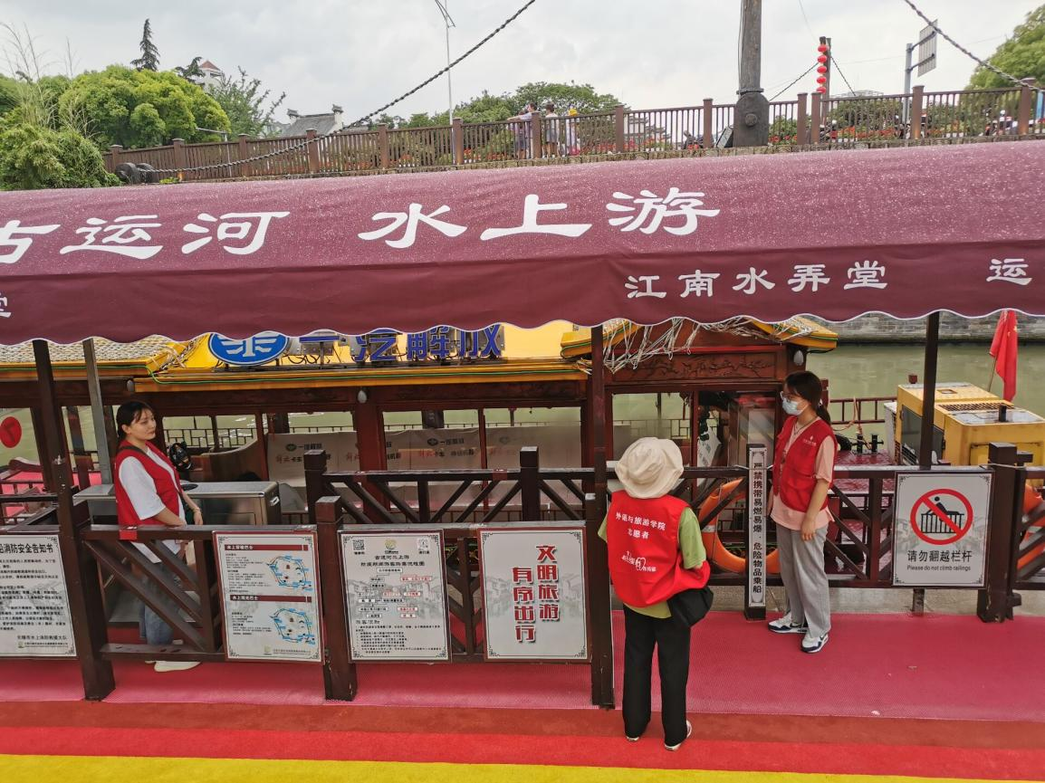 志愿活动分为两支服务小队,一队于校内展开,来到国际交流中心6楼帮助老师们整理办公用品、打扫办公室卫生等,为工作繁忙的老师们营造了整洁的办公环境。另一队则来到无锡古运河进行志愿服务,为游客指引路线、扫码检票等,展现了我院学生积极向上的良好风貌,充分发扬理了论联系实际的良好学风。通过志愿服务,紧密联系自身思想、实际,搞好学习的消化吸收,努力把党课所学知识转化为服务社会的本领使学习培训真正取得实实在在的效果,用实际行动向党组织靠拢。