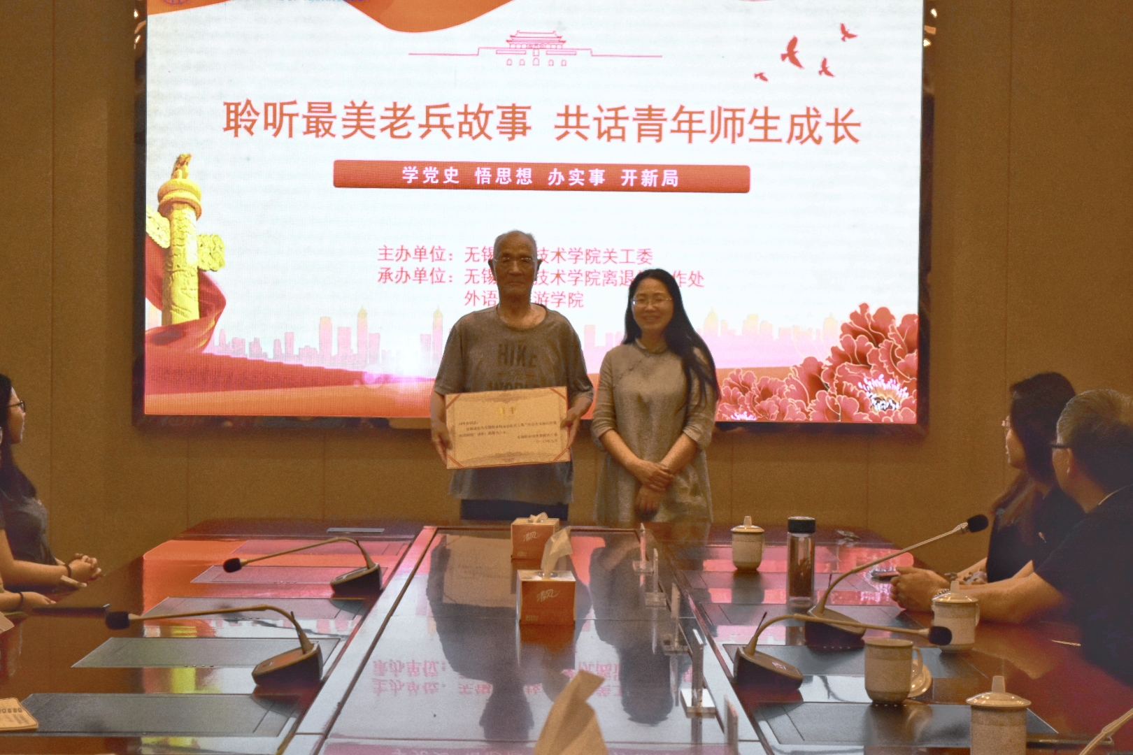 6月3日下午三点半,无锡最美老兵、玛雅吧 志愿军老战士、退休老同志刘升启老师在综合楼F201,向外语与旅游学院的青年师生们讲述了自己在抗美援朝中的故事。无锡职业技术副校长杨雪琴、关心下一代工作委员会常务副主任华坚、关心下一代工作委员会主任江铭、离退休工作处处长罗嘉军、外语与旅游学院青年教师代表周嫄、王小梅,以及40余名学生代表共同参与了此次活动。
