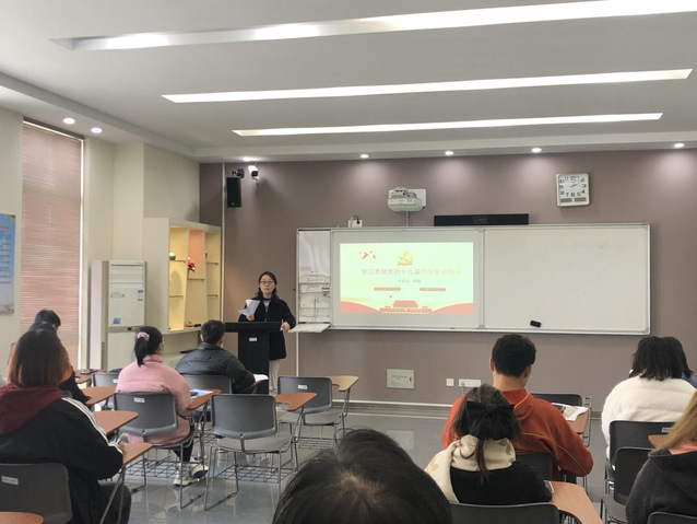 2021年12月7日,围绕“学习贯彻十九届六中全会精神”主题内容,我院党总支副书记周嫄于国教504为学生党员们讲授了一堂生动的专题党课。课上,周书记着重围绕《决议》的学习,通过“理想引领”、“理论创新”等关键词,全面系统地阐释了全会的政治意义、历史意义和战略意义,深入浅出地剖析了总结党的百年奋斗重大成就和历史经验的重大意义和丰富内涵。