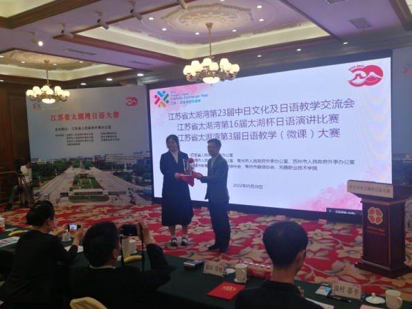 5月28日2022江苏省太湖湾第16届太湖杯日语演讲大赛在我校的承办下顺利举行。代表我校出战的来自商务日语62032班的金纯真、戴瑞瑞、韩福家三位同学一路从校内选拔赛中过五关斩六将取得决赛资格,并凭借卓越的表现和稳定的发挥获得专科组2个特等奖和1个一等奖的好成绩。