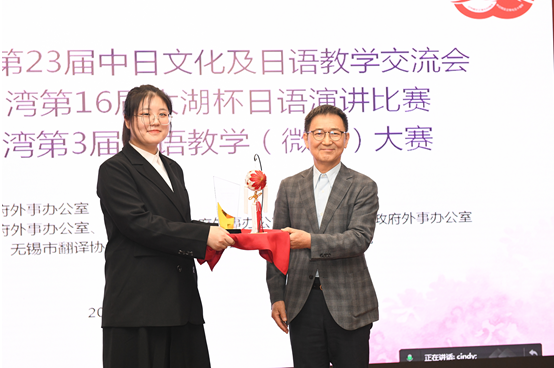 作为本次系列赛重头戏的太湖杯日语演讲大赛,受疫情影响采用线上线下同步的方式进行,主会场7位评委全部为日籍。我校商务日语专业三位学子在指导老师张华清、张理夏、张虞昕和外教西山阳子的悉心指导下,在专科组比赛中表现出色,取得了本次大赛特等奖2项(金纯真同学、戴瑞瑞同学)、一等奖1项(韩福家同学)。我校获得承办单位特别贡献奖、才艺表演一等奖及先进集体奖。此外,日语教学微课大赛中我校日语专业刘金凤、沈倩昉、单天洪老师获得“江苏省太湖湾第3届日语教学(微课)大赛”一等奖。商务日语专业金纯真同学另获友城(日本由利本庄市)特别奖;李耀扬、王蕊同学圆满完成本次大赛的主持工作。