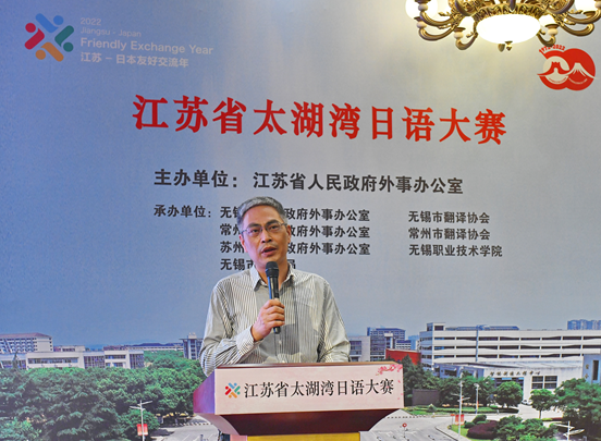 5月28日,由江苏省人民政府外事办公室主办,玛雅吧 及苏锡常三地外事办、翻译协会承办的“江苏省太湖湾第23届中日文化及日语教学交流会、江苏省太湖湾第16届太湖杯日语演讲比赛、江苏省太湖湾第3届日语教学(微课)大赛”在山明水秀大酒店主会场和线上十几个分会场顺利进行。玛雅吧 党委副书记周桂瑾教授做了大赛致辞,随后与无锡市人民政府外事办公室副主任詹熠、无锡市教育局高等教育与职业教育处主任游亮明、无锡翻译协会会长卢新才、日商俱乐部副会长深町哲等领导嘉宾同时按下开幕式启动按钮,正式启动各赛项。