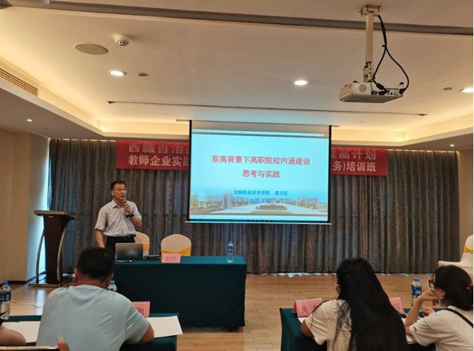 8月1日上午,2021年度西藏自治区职业院校素质提高计划教师企业实践(汽车维修、电子商务、家政服务)培训项目开班典礼在无锡江南四季酒店顺利举行。我校龚方红校长、汽车学院邹晔院长、管理学院俞林院长、郑爱翔副院长、外语与旅游学院郭再泉书记、冯臻院长出席开班典礼。本次培训共有来自西藏自治区拉萨市第一中等职业技术学校、日喀则市职业技术学校、山南市职业技术学校、林芝市职业技术学校、昌都市职业技术学校、那曲市职业技术学校、阿里地区中等十几所职业院校的近50名老师参加。