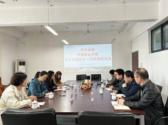 冯臻院长首先代表学院对韦院长一行的到来表示热烈欢迎,介绍了学院办学特色、专业建设、校企合作、产教融合等方面情况。韦立宏副院长对我院的各项工作给予了高度评价,并介绍了伊春职业学院办学情况。随后,双方就专业群建设、在线精品课程建设、实验(实训)室建设、校企合作、“三教”改革、人才培养模式创新、教学信息化等问题展开了热烈探讨。