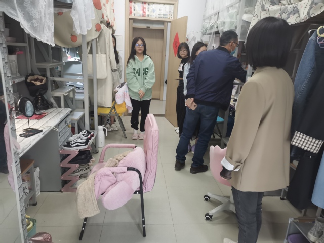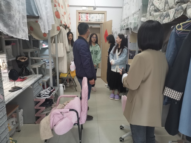 为关心我院学子生活状况,深入了解学生需求,进一步落实我院“4321青春同行”一站式学生社区管理模式,发挥优秀宿舍朋辈引领的带头作用,4月12日上午,外语与旅游学院党总支书记郭再泉、副书记周嫄以及辅导员高枫雯老师走访学生宿舍。
