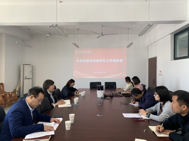 5月9日上午,校学生处处长徐悦、副处长罗启宝及心理健康中心主任余新年赴外语与旅游学院开展学生工作调研。外语与旅游学院党总支书记郭再泉、副书记周嫄和部分辅导员参加了调研座谈。