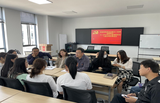 为深入学习贯彻习近平新时代中国特色社会主义思想,推动外语与旅游学院2023届毕业生转本与就业工作,发挥教工党员在学生升学、就业工作中的先锋模范作用,5月9日下午,外语与旅游学院教工第一党支部在国教308教室开展党员集中学习暨2023届毕业生转本与就业帮扶推进会,支部党员和部分大三在校生参加了活动。