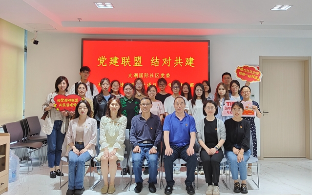 为深入学习贯彻党的二十大精神与习近平新时代中国特色社会主义思想,创新基层党建工作,提高党建工作水平,5月17日下午,外语与旅游学院与太湖国际社区“党建联盟、结对共建”签约仪式在太湖国际社区党群服务中心举行。外语与旅游学院党总支书记郭再泉、外语与旅游学院党总支副书记周嫄、校关工委秘书长江铭带领学生党支部共21人参加本次活动。