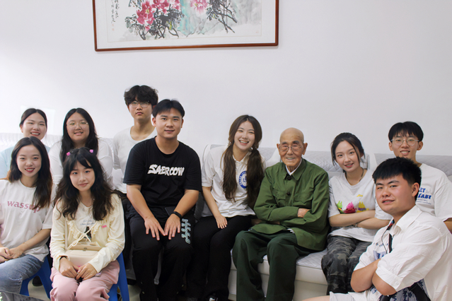 对于年轻人,孔参谋长充满期待和寄语。他希望年轻人热爱自己的祖国,能够珍惜现在的幸福生活,感恩拥有繁荣的社会环境。他同时鼓励年轻人要有责任感和使命感,努力为国家和人民的利益奉献自己的力量。采访结束后,团队将孔爷爷送回他的院子,也见到了孔爷爷的妻子,奶奶性格很热情,亲切地让同学们下次有时间再去。