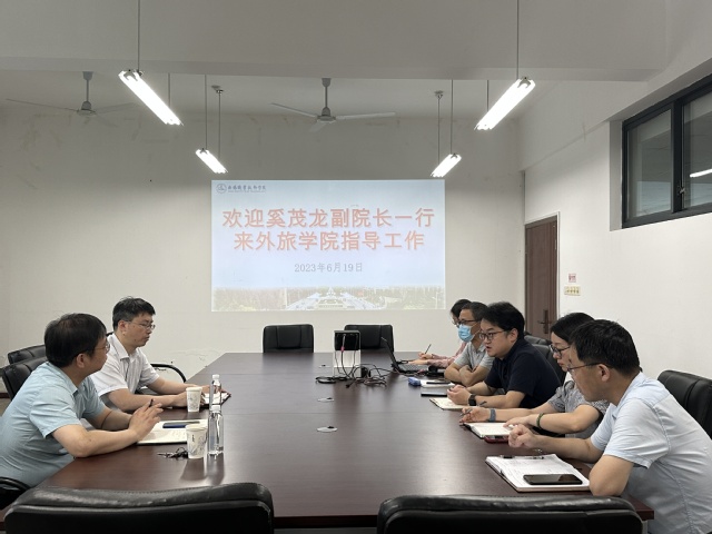 6月19日上午,副校长奚茂龙、教务处副处长乔巍一行来到外语与旅游学院走访调研。外语与旅游学院总支书记郭再泉、院长冯臻、副书记周嫄、副院长徐优明等班子成员参加本次调研会。
