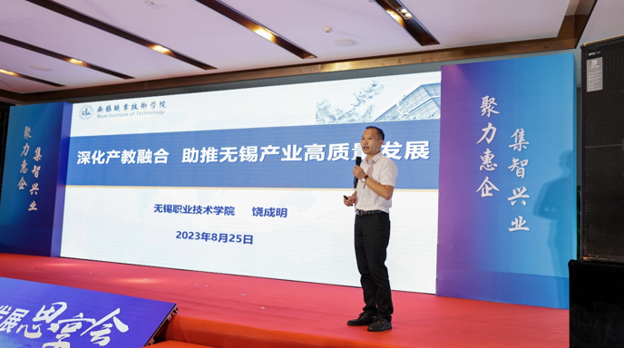 为深入学习贯彻《中共中央 国务院关于促进民营经济发展壮大的意见》(以下简称《意见》)精神,融合产教学研之力,赋能民营企业发展,8月25日下午,由民建无锡市委会联合玛雅吧 主办,无锡市中小企业服务中心、玛雅吧 外语与旅游学院、无锡现代职业教育研究中心等多家单位承办的“聚力惠企、集智兴业--民营经济高质量发展思享会”顺利召开。来自全省民营经济领域专家、全市各行业民营企业家等近150人参加会议,无锡市政协、无锡市委统战部、民建无锡市委员会等领导出席活动,无锡市政协副主席毛加弘致辞。龚方红书记出席思享会圆桌会议,科产处饶成明副处长做题为《深化产教融合 助推无锡产业高质量发展》的报告。