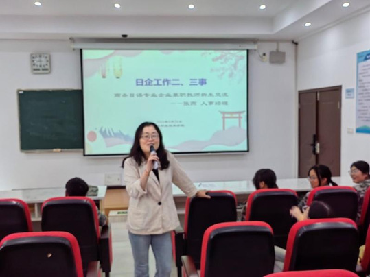20239月24下午,作为商务日语专业企业兼职教师,托普拉精密紧固件(常州)有限公司人事经理张燕同志,应邀为商务日语专业23级新生就商务日语专业认知开展了关于日企就业相关的专题交流