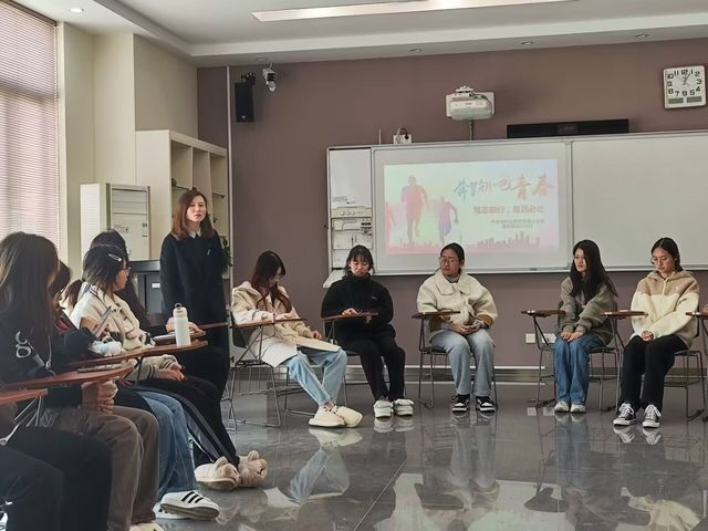 2023年11月28日,商务英语22351举办了“笃志前行,虽远必达”思想沟通小会场活动,解答学生升学和就业方面的困惑。商务英语系教研室负责人刘一览老师、班主任李骥云老师参加了活动。
