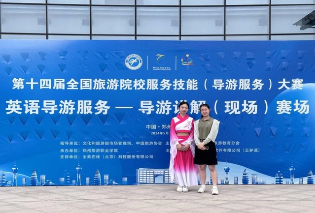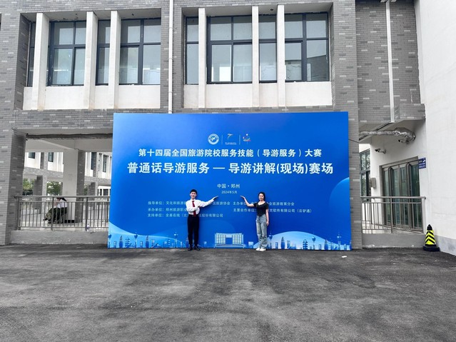 2024年5月23日—5月26日,来自全国30个省、自治区、直辖市的303所院校883名选手参加的第十四届全国旅游院校服务(导游服务)技能大赛在郑州举行。文旅学院旅游管理专业派出的韩乾胜、雷雨阳、王淑睿、刘思彤4名选手分别参加了普通话导游服务和英语导游服务两个项目的比赛,在与本科院校同组比赛中,选手们沉稳应对,取得了1个二等奖、3个三等奖的好成绩。