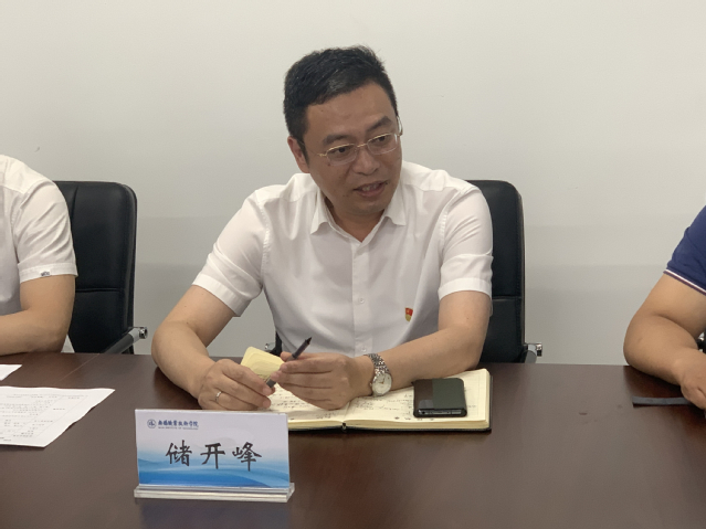 最后,储开峰对文旅学院的党建工作提出三点建议,一是聚焦一融双高,加强文旅学院党的建设;二是聚焦院系工作重点,推动文旅学院新发展;三是聚焦明纪守纪,营造文旅学院风清气正发展氛围。