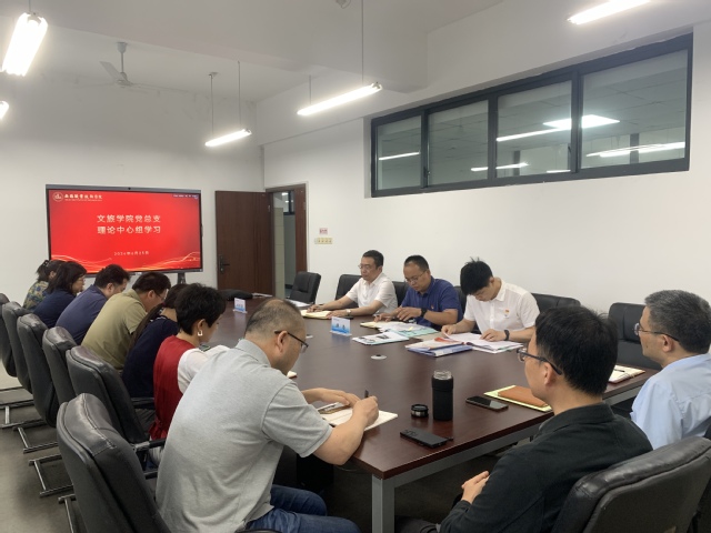 6月25日下午,文旅学院党总支在国教604会议室召开文旅学院党总支理论学习中心组(扩大)学习会,本次会议主题是“弘扬教育家精神,聚力文旅新发展”,会议由文旅学院党总支书记吴乃鑫主持,副校长储开峰、纪委办及组织部代表,文旅学院理论学习中心组全体成员及三级机构负责人参加了学习会。
