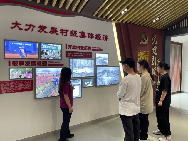 实践团首先参观了白塔村特色景点,白塔村是全国文明村镇、中国美丽休闲乡村和全国乡村旅游重点村,文旅资源丰厚,有保存完好的“白塔钟声”“宋代古窑”“薛桥寻梅”“千年古井”等历史遗迹,村内先后建成了党建展示馆、于伶纪念馆、宜人书院、生活行旅馆、小镇客厅等展馆,形成了“千年铁魂·江苏情”演绎基地、文化园、牵稼园等景区,接待了一批又一批游客。