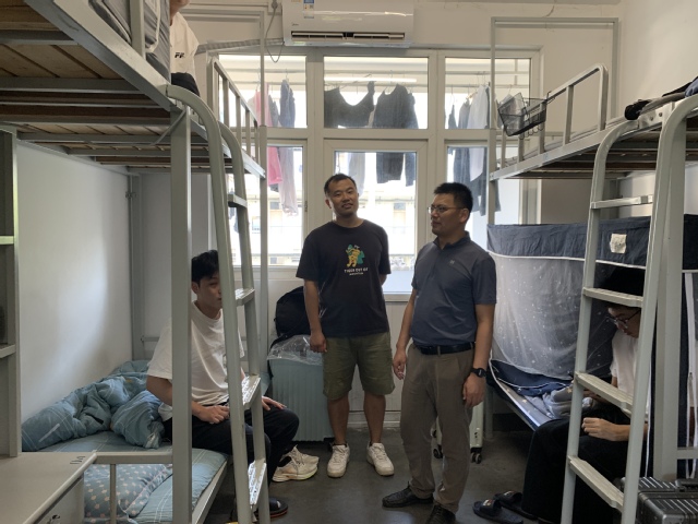 在学生社区走访中,学生积极热情地与老师展开交流,老师亲切地送上学院的关心和问候,详细询问同学们的学习、生活、思想状况。吴乃鑫、丁远两位书记关切学生诉求,鼓励学生有困难和问题及时向学院反映,学院力求聚焦学生需求,为学生办实事。