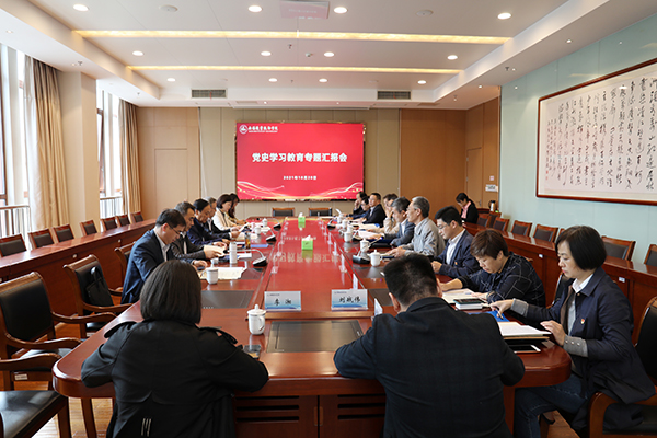 1028日下午,省委教育工委党史学习教育第三巡回指导组组长陈章龙、副组长晏仲超一行6人来我校指导检查工作,学校党史学习教育领导小组成员及部分二级党组织负责人参加了汇报会。