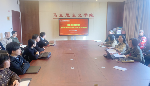 11月16日下午,马克思主义学院直属党支部组织学习党的十九届六中全会精神,杨雪琴副校长同支部全体党员教师共同学习并进行了交流研讨。