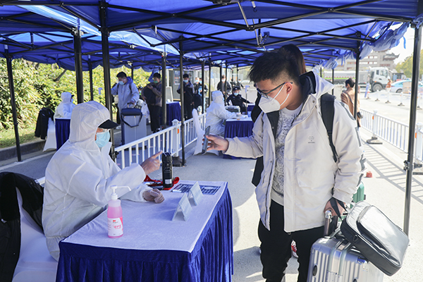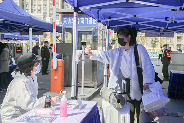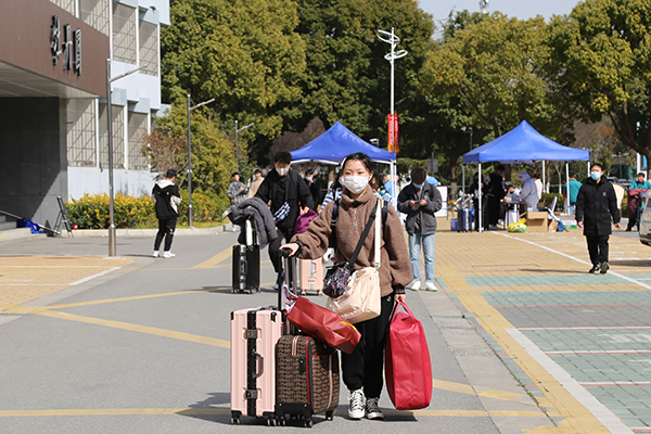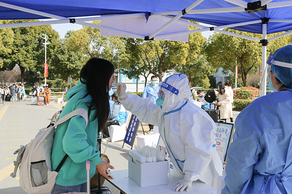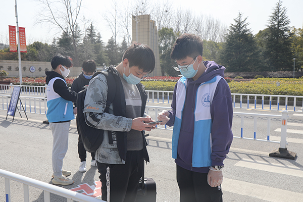 返校流程严格执行疫情防控“一核二查三测四提醒”,即“身份核实—健康码、行程码查验—体温测量—提醒佩戴口罩”四步骤。同学们在工作人员的引导下,有序进入校园,并第一时间进行核酸检测。校团委还组织了44名学生志愿者,为返校同学做好服务工作。