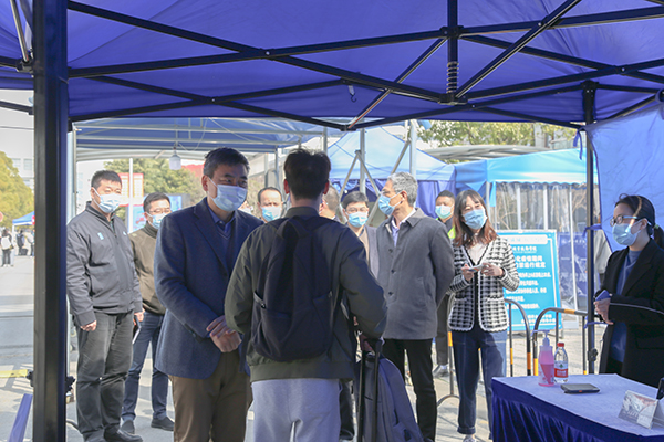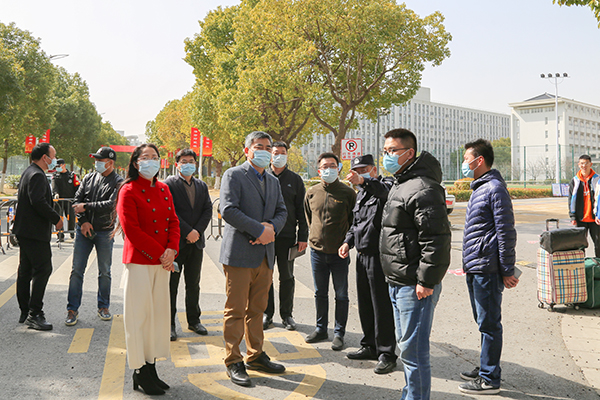 3月5日至6日,我校10000余名学生分期、分批、错峰返校,市教育局相关领导及我校领导朱爱胜、周桂瑾、杨雪琴等来到现场检查工作,欢迎同学们返校。