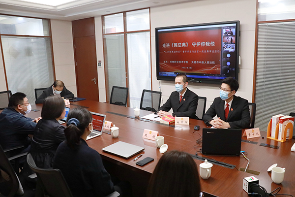 据了解,我校与无锡市中级人民法院2021年底达成共建协议,致力于青年大学生普法教育。华俭学表示,这也是他们的法官第一次通过线上互动的方式向青年大学生解读《民法典》,“同学们的热情让我们更有底气,把这种互动式普法教育继续开展下去。”